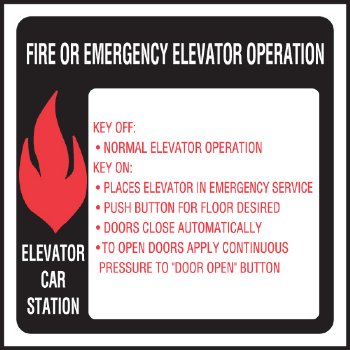 6" x 6" Elevator Fire & Emergency Signage Elevator Car Stations.. Plastic non-glare finish. Process subsurface inks resist sun and light fading. Full 3M back adhesive.