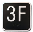 3.75" x 3.75" x 1/8" Aluminum CLJ Jamb Braille. Custom Blend Hybrid Powder Painted Background. White Epoxy Paint on Border and Characters. Available with Any AlphaNumeric 1 to 3 Digit Combination.