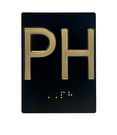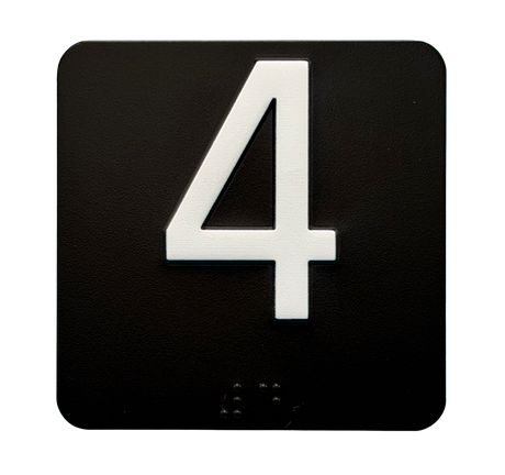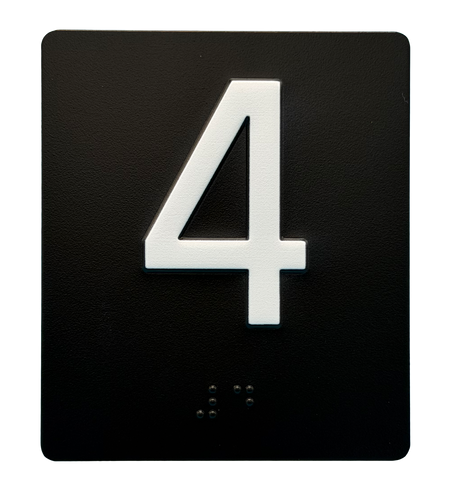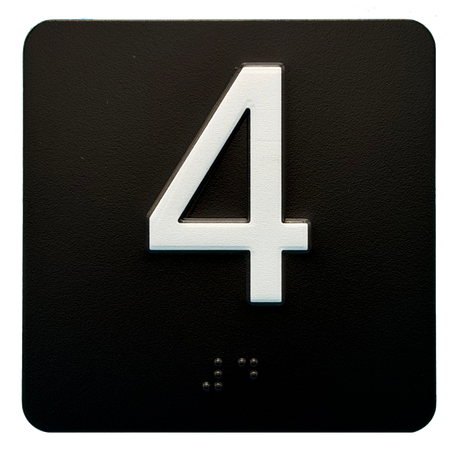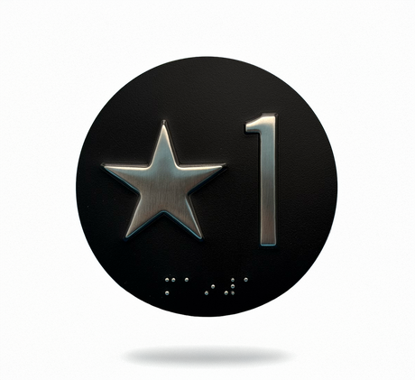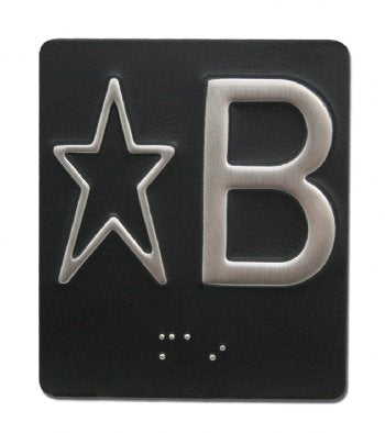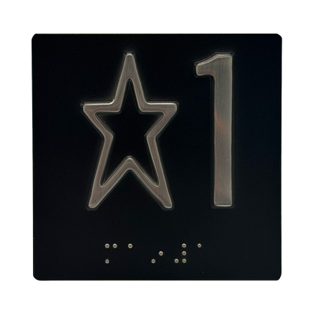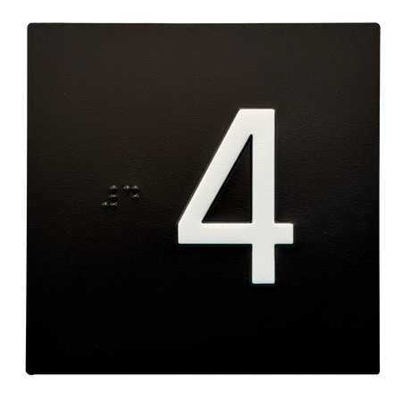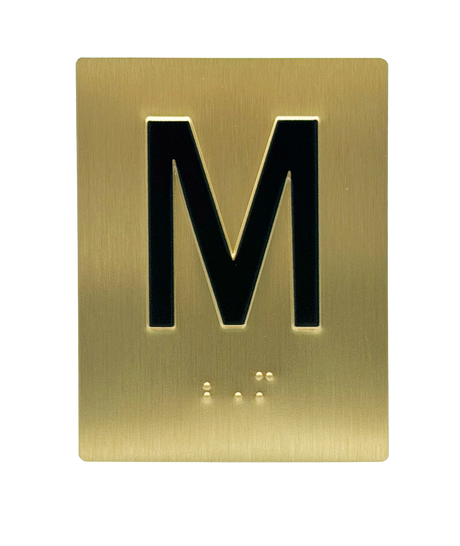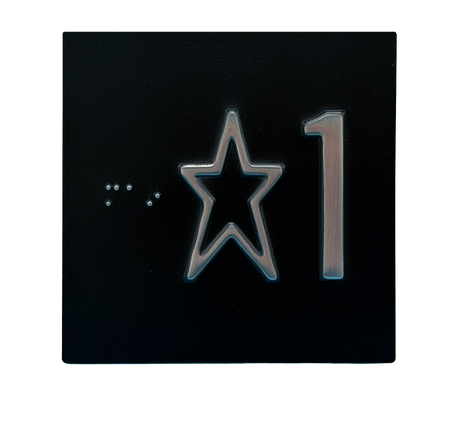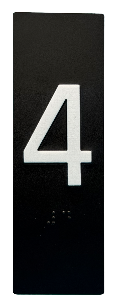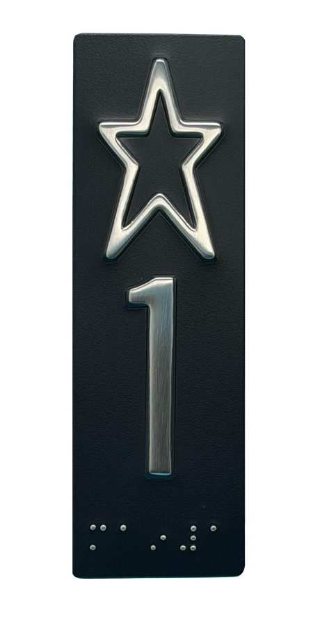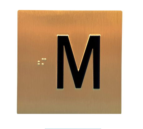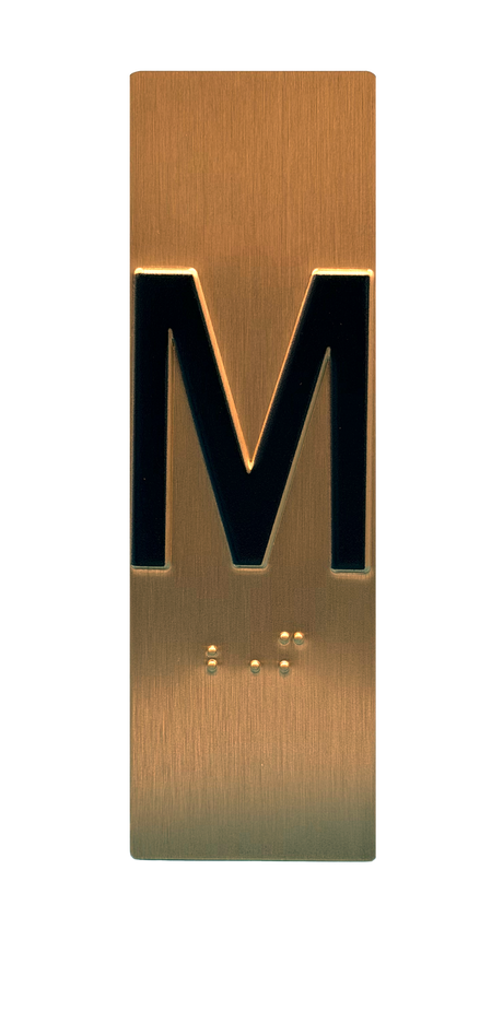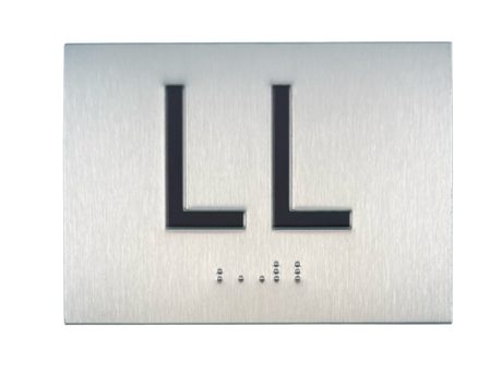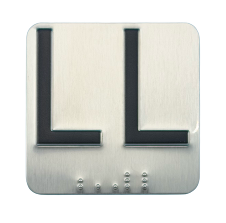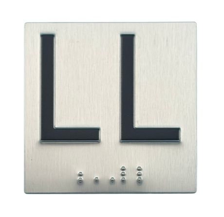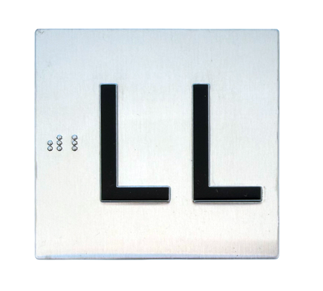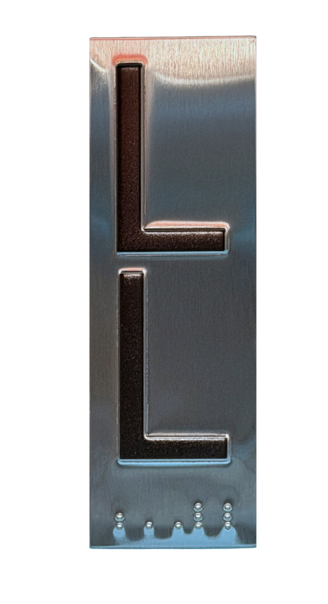 Embossed Elevator Jamb Braille with ADA Compliant Braille and Raised Characters. Available in multiple finish options on every product.