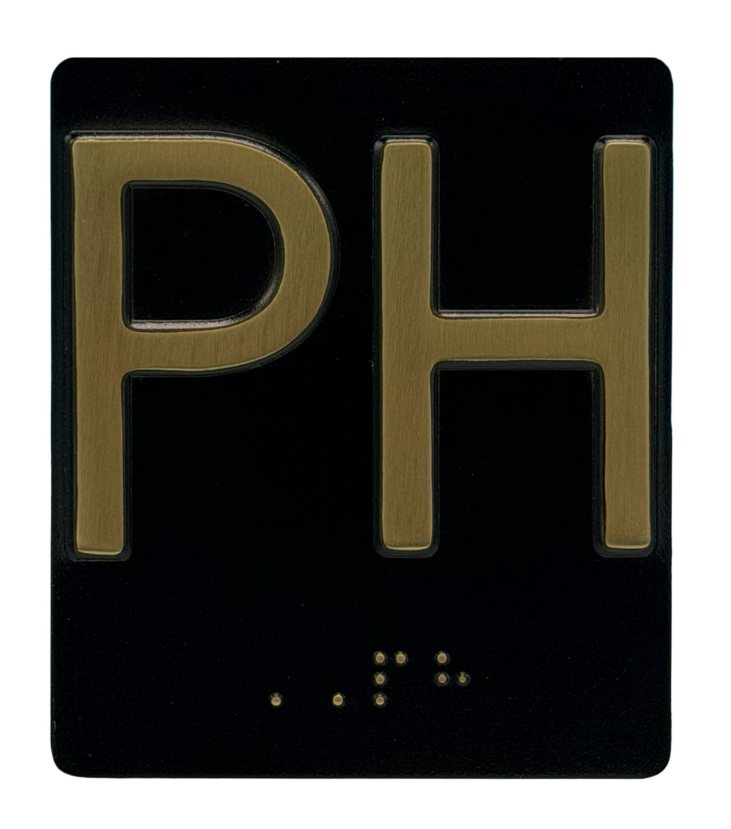3" x 3.5" (76.2 x 88.9 mm) 1/8" radius (3.175 mm) 19 gauge (.040" thick) Stainless Steel Elevator Jamb Braille Plates. Meets all ADA standards. Thickest solid stainless steel jamb plate in the industry. News Gothic typestyle with two Alphanumeric Characters per Plate. 3M VHB adhesive. Call for drive pin holes or stud mounting options.