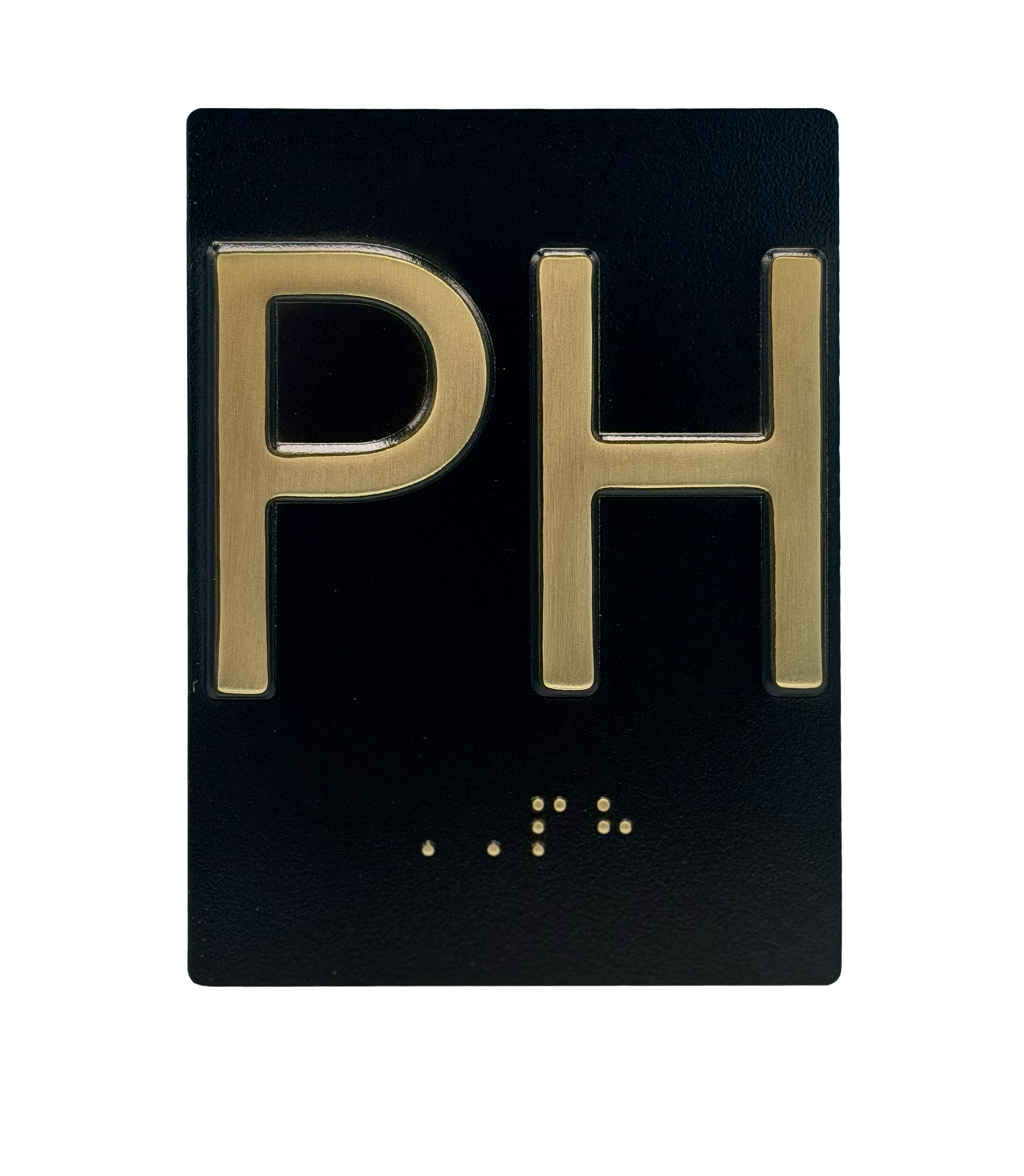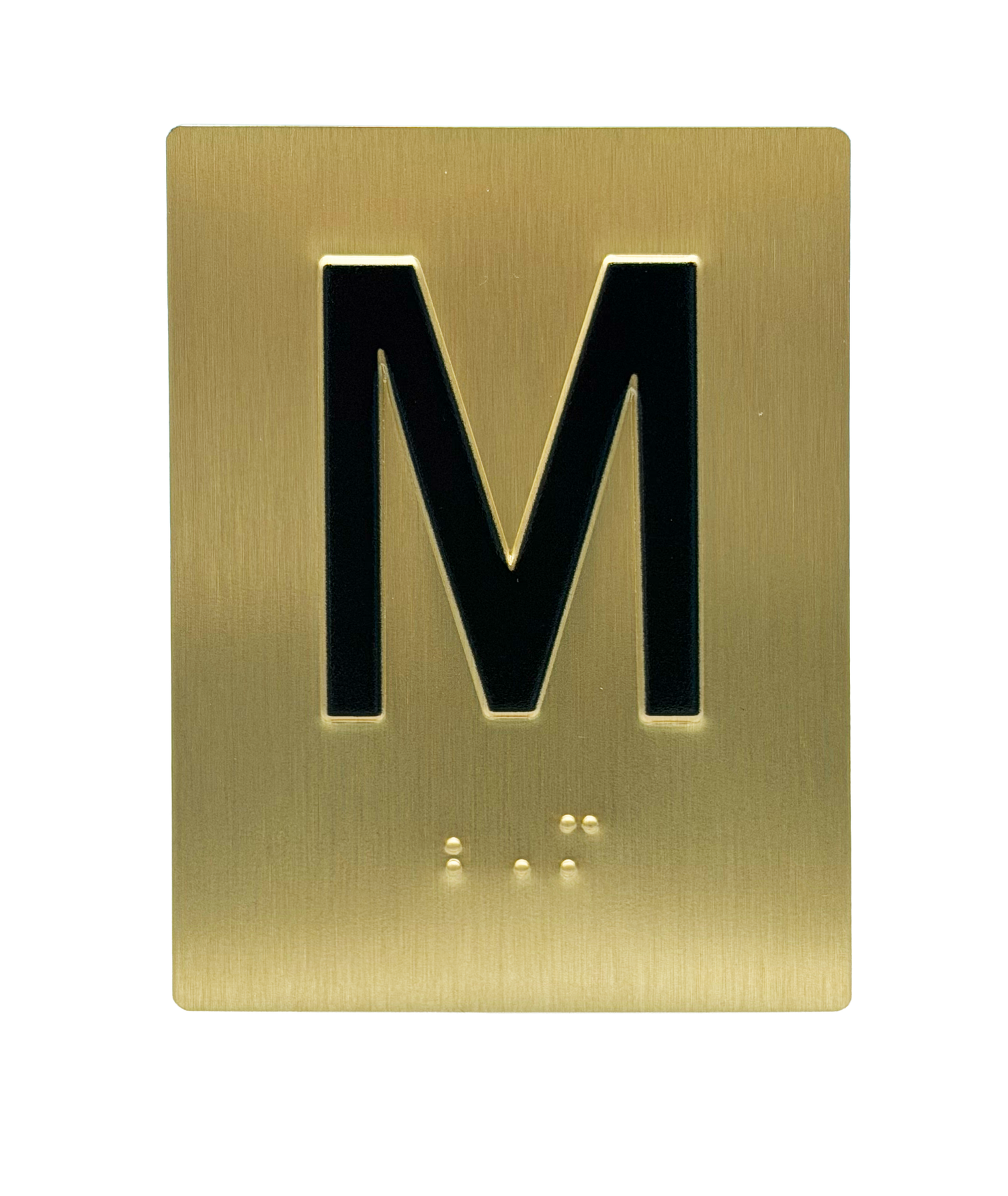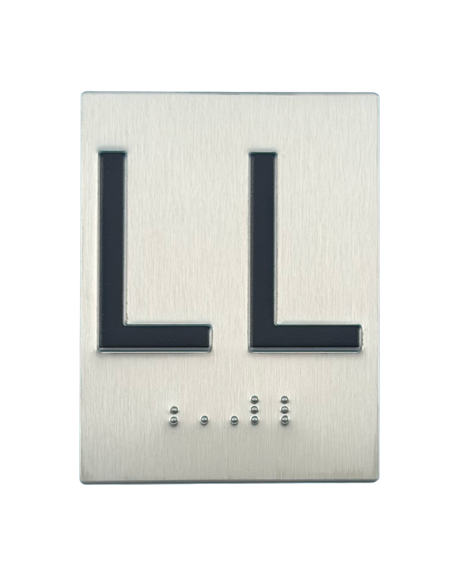 3" x 4" (76.2 x 101.6 mm) 1/16" radius (1.5875 mm) 19 gauge (.040" thick) Stainless Steel Elevator Jamb Braille Plates. Meets all ADA standards. Thickest solid stainless steel jamb plate in the industry. News Gothic typestyle with two Alphanumeric Characters per Plate. 3M VHB adhesive. Call for drive pin holes or stud mounting options.