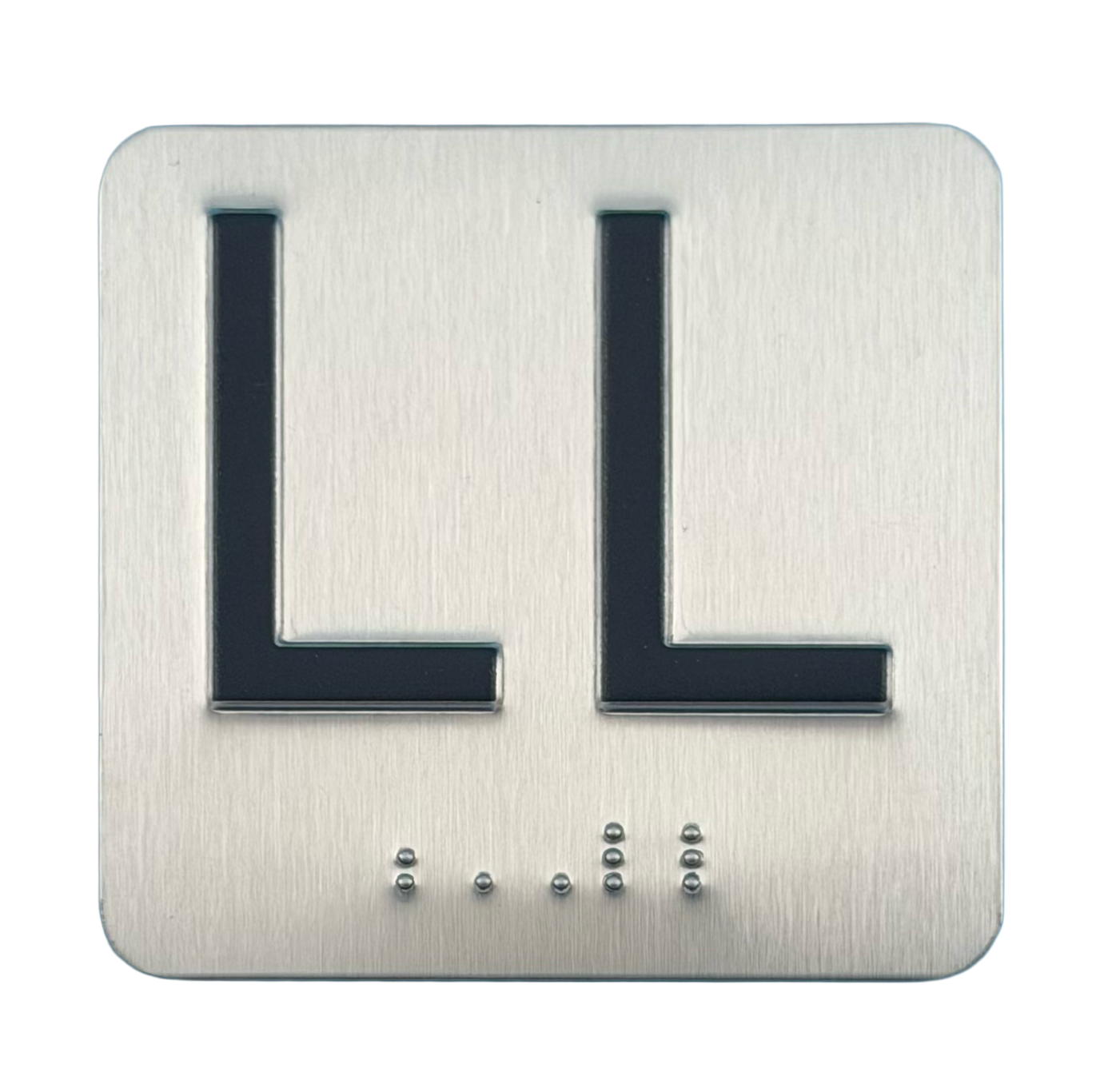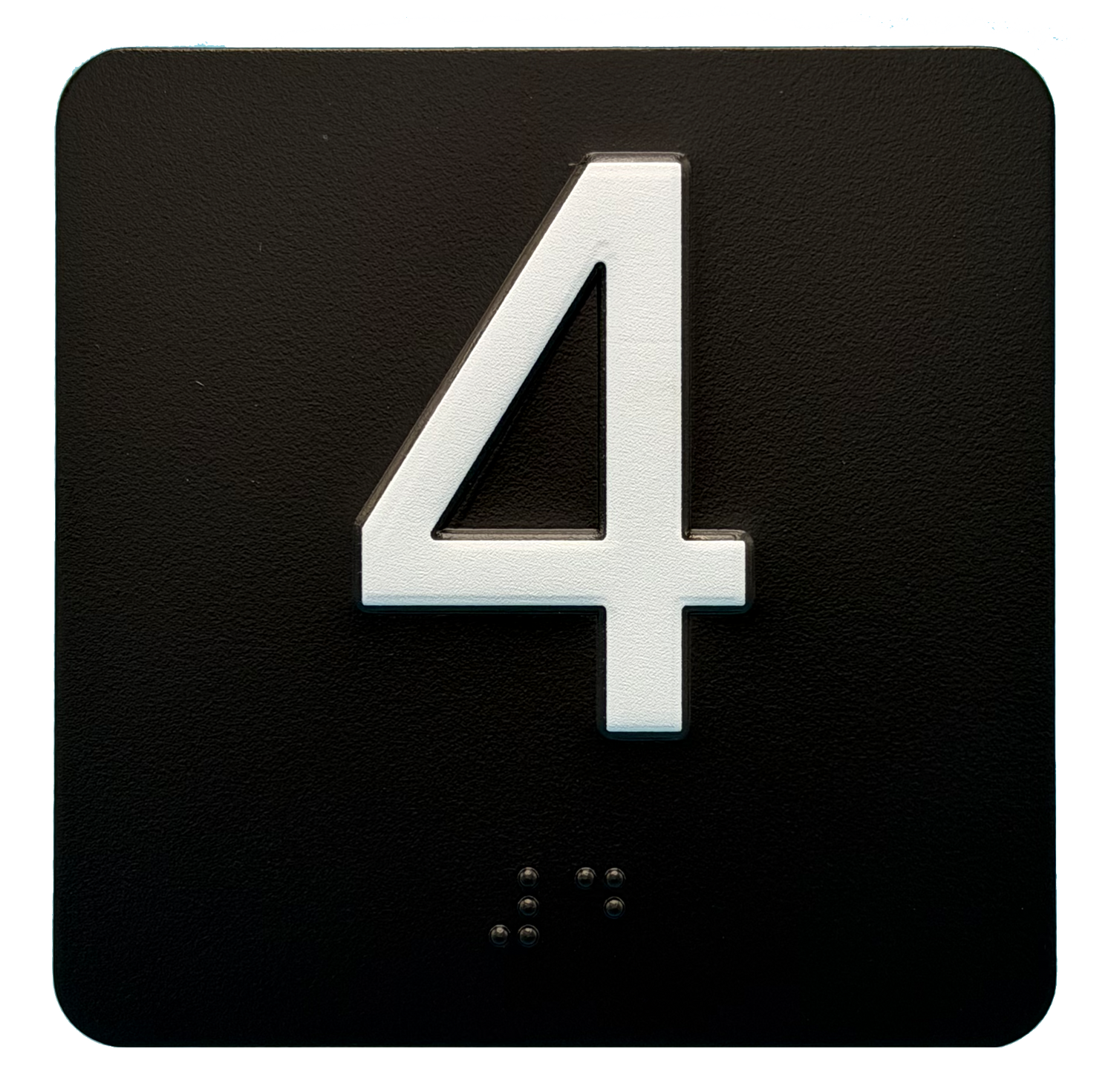 3.5" x 3.5" (1/4" radius) 19 gauge (.040" thick) Stainless Steel Elevator Jamb Braille Plates. Meets all ADA standards. Thickest solid stainless steel jamb plate in the industry. News Gothic typestyle with two Alphanumeric Characters per Plate. 3M VHB adhesive. Call for drive pin holes or stud mounting options.