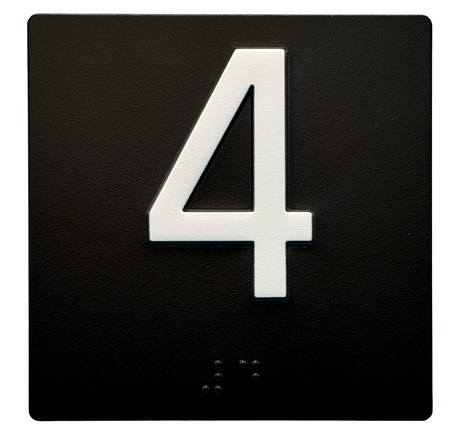 3.25" x 3.25" (82.55 x 82.55 mm) 1/16" radius (1.5875 mm) 19 gauge (.040" thick) Stainless Steel Elevator Jamb Braille Plates. Meets all ADA standards. Thickest solid stainless steel jamb plate in the industry. News Gothic typestyle with two Alphanumeric Characters per Plate. 3M VHB adhesive. Call for drive pin holes or stud mounting options.