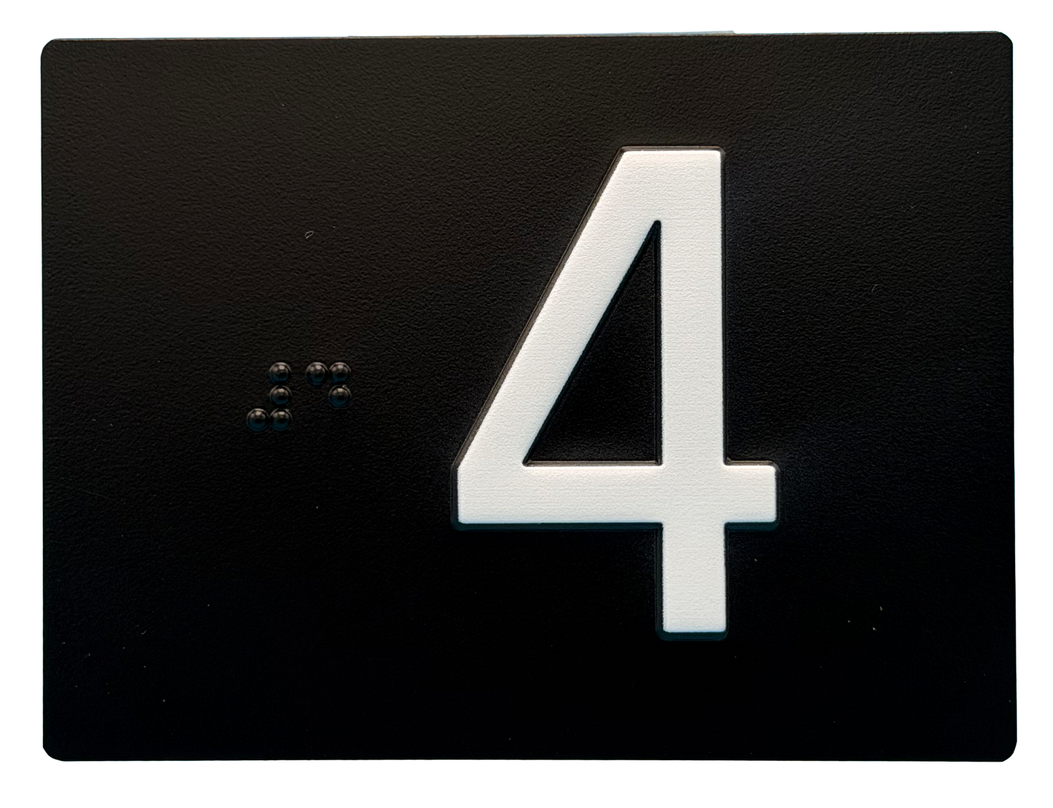 4" x 3" braille left (101.6 x 76.2 mm) 1/16" radius (1.5875 mm) 19 gauge (.040" thick) Stainless Steel Elevator Jamb Braille Plates. Meets all ADA standards. Thickest solid stainless steel jamb plate in the industry. News Gothic typestyle with two Alphanumeric Characters per Plate. 3M VHB adhesive. Call for drive pin holes or stud mounting options.