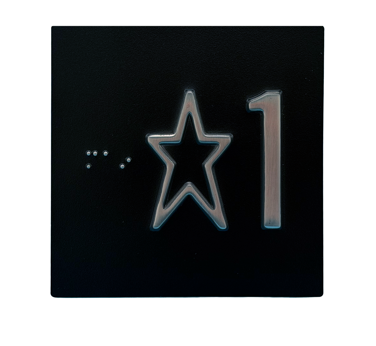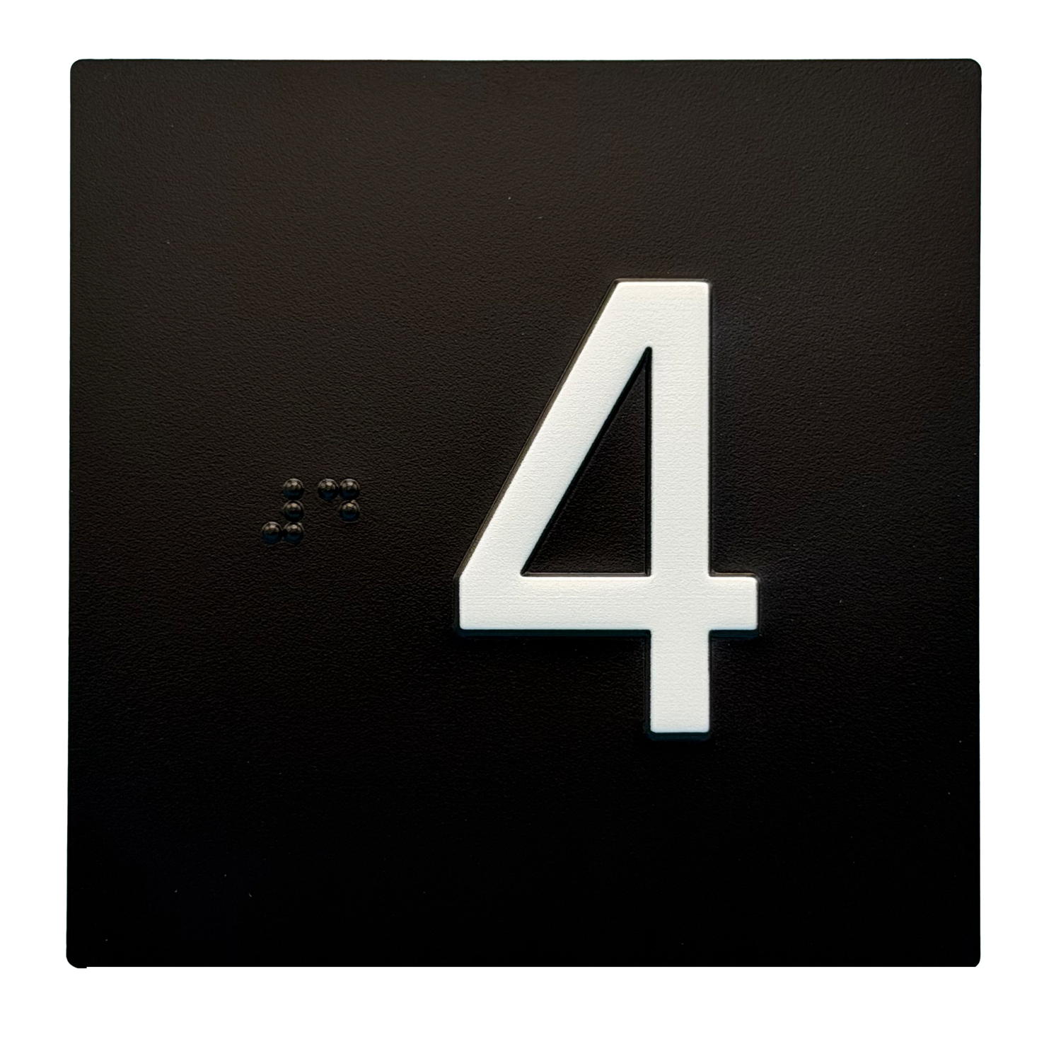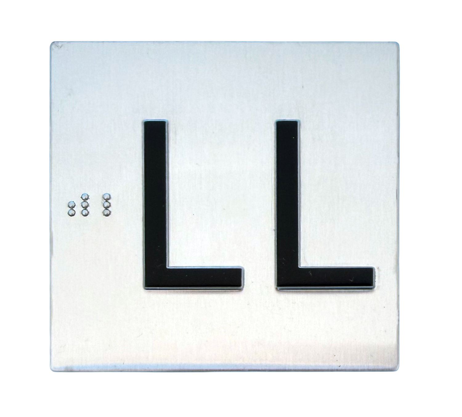 4" x 4" braille left (101.6 x 101.6 mm) 1/16" radius (1.5875 mm) 19 gauge (.040" thick) Stainless Steel Elevator Jamb Braille Plates. Meets all ADA standards. Thickest solid stainless steel jamb plate in the industry. News Gothic typestyle with two Alphanumeric Characters per Plate. 3M VHB adhesive. Call for drive pin holes or stud mounting options.