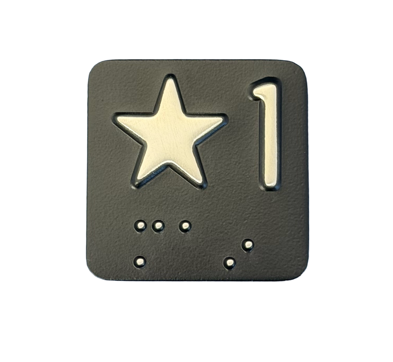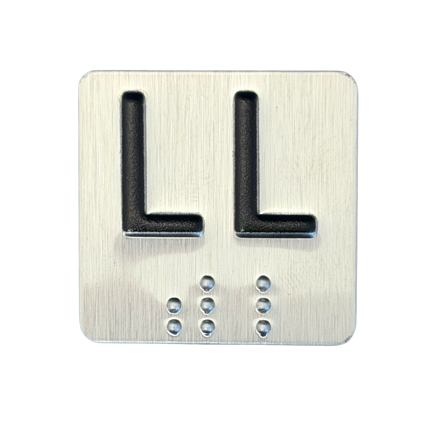 1.25" x 1.25" (31.75 x 31.75 mm) 1/8" (3.175 mm) Elevator Car Station Braille Plates. Meets all ADA standards. News Gothic typestyle. Standard Studs are #6-32 x 3/8" Long.