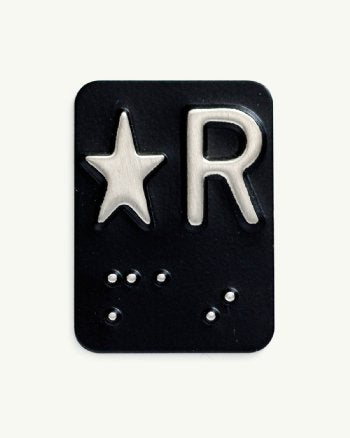 1" x 1.375" (35.4 x 34.925 mm) 1/8" radius (3.175 mm) Elevator Car Station Braille Plates. Meets all ADA standards. News Gothic typestyle. Standard Studs are #6-32 x 3/8" Long.