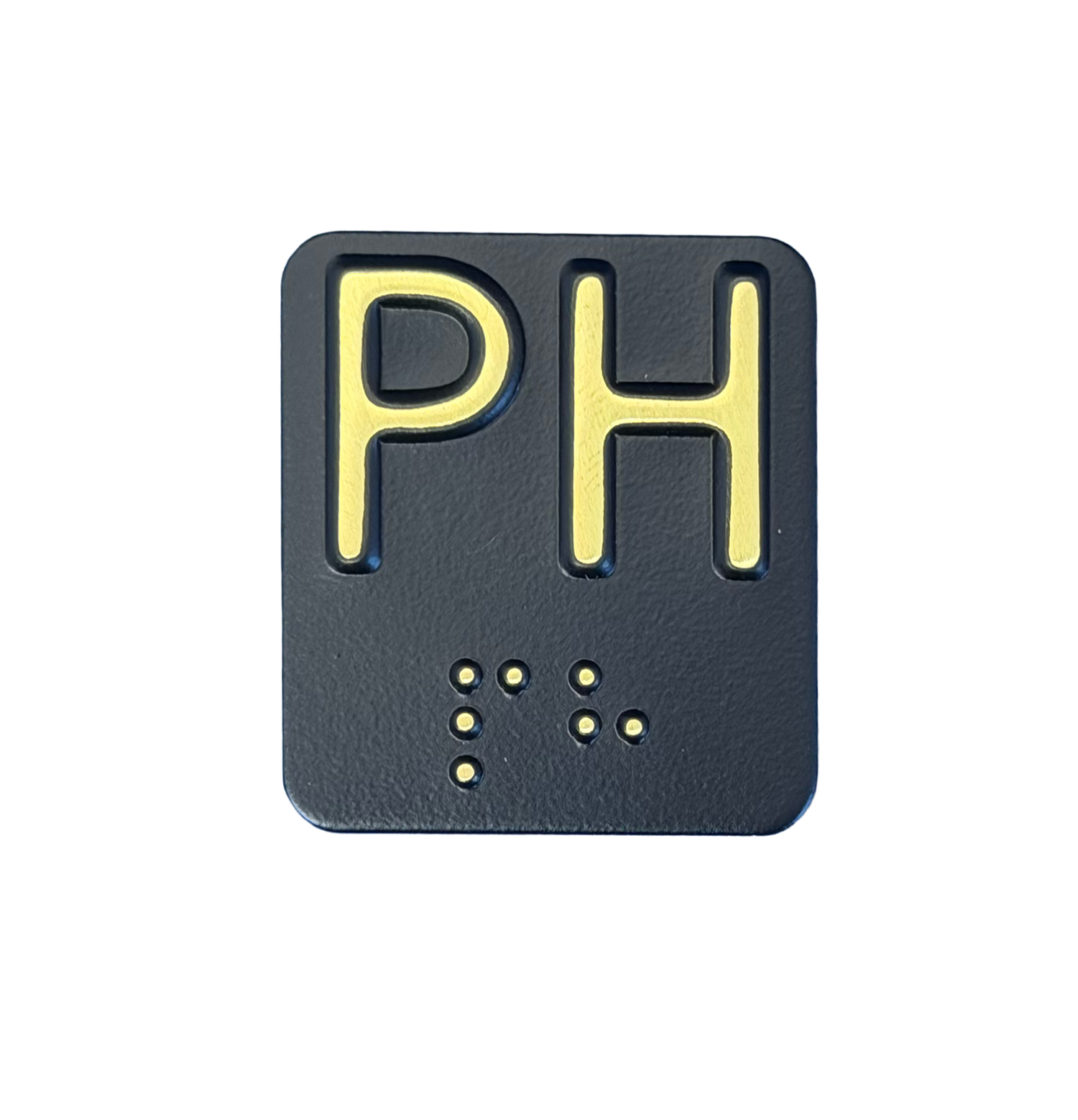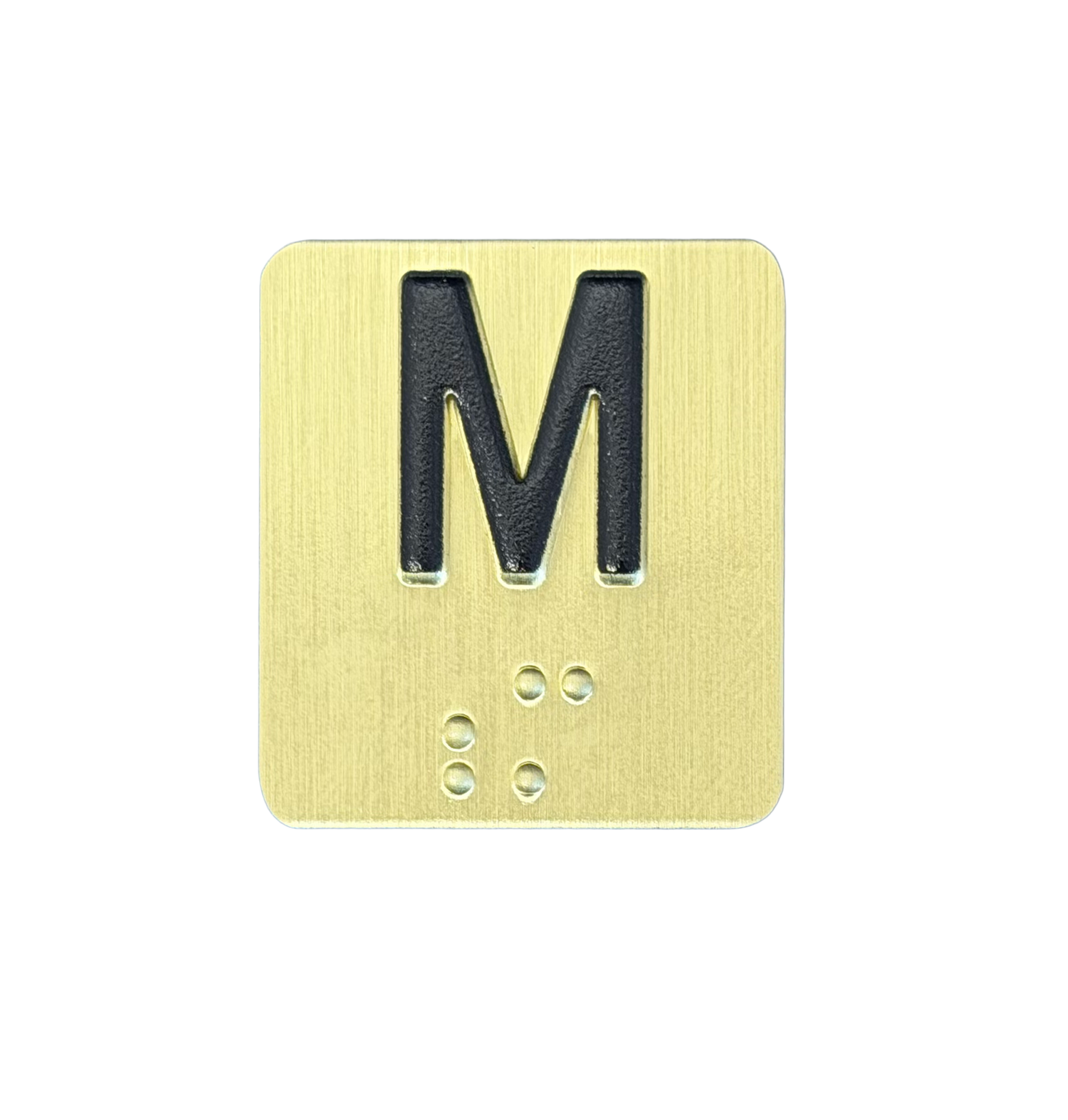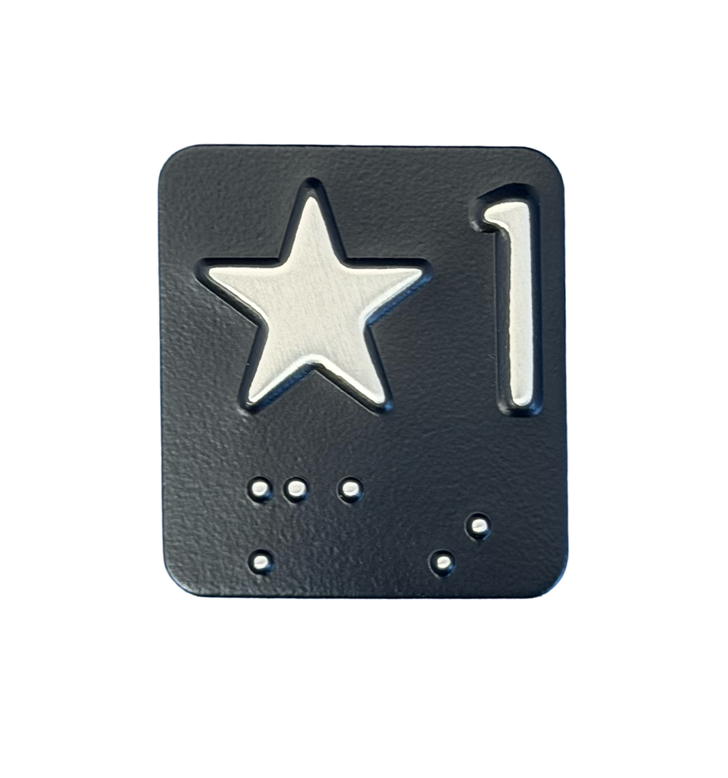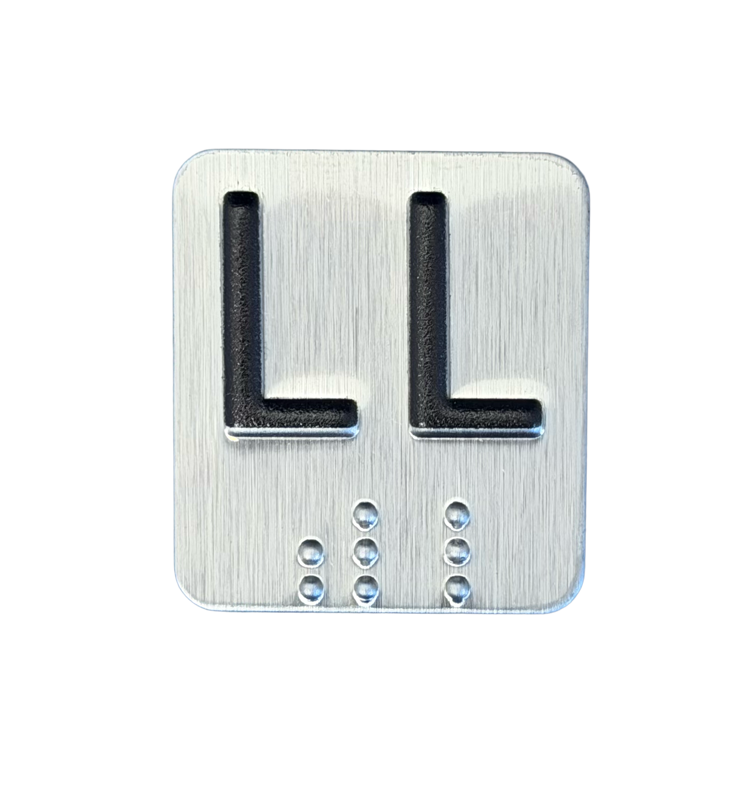 1.125" x 1.25" (28.575 x 31.75 mm) 1/8" radius (3.175 mm) Elevator Car Station Braille Plates. Meets all ADA standards. News Gothic typestyle. Standard Studs are #6-32 x 3/8" Long.