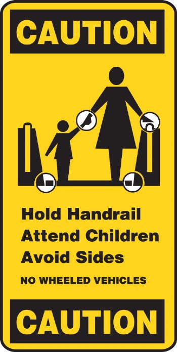 4.25" x 9" Escalator Signage. Printed on Plastic. 3M full back adhesive. Process subsurface screen inks resist sun and light fading. Plastic non-glare finish. Process inks resist sun and light fading. Full 3M back adhesive.