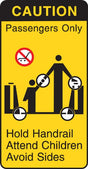 4" x 7.75" Escalator Signage. Printed on Plastic. ASME and Canadian Safety Code. Plastic non-glare finish. Process subsurface inks resist sun and light fading. Full 3M back adhesive.