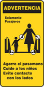4.25" x 9" Escalator Signage (Spanish, Atlanta, Miami). Printed on Plastic. Plastic non-glare finish. Process subsurface inks resist sun and light fading. Full 3M back adhesive.