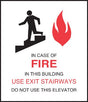 3" x 3.5" In Case Of Fire Elevator Signage. Plastic non-glare finish. Process subsurface screen inks resist sun and light fading. Full 3M back adhesive.