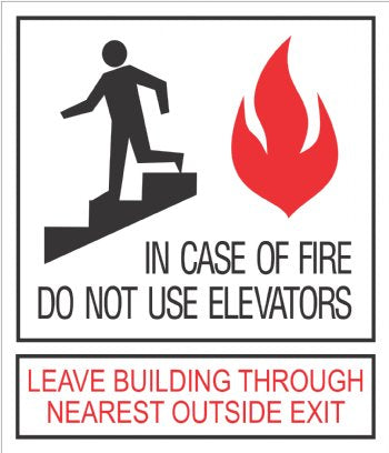 6” x 7” In Case of Fire Elevator Signage. Plastic non-glare finish. Process subsurface inks resist sun and light fading. Full 3M back adhesive.