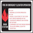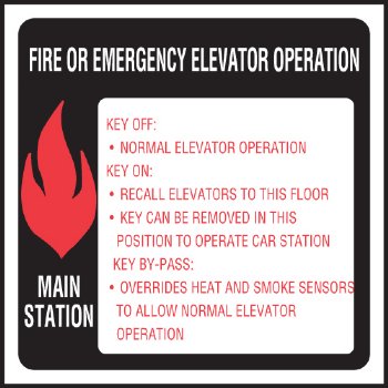 6" x 6" Elevator Fire & Emergency Signage Main Station. Plastic non-glare finish. Process subsurface inks resist sun and light fading. Full 3M back adhesive.