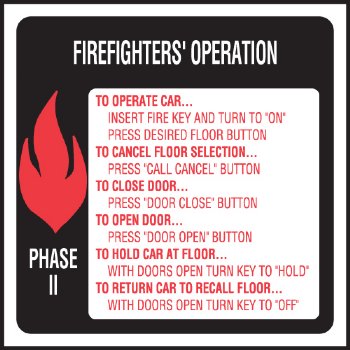 6" x 6" Elevator Fire & Emergency Signage Main Station. Plastic non-glare finish. Process subsurface inks resist sun and light fading. Full 3M back adhesive.