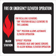 6" x 6" Elevator Fire & Emergency Signage Main Station. Plastic non-glare finish. Process subsurface inks resist sun and light fading. Full 3M back adhesive.