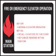 6" x 6" Elevator Fire & Emergency Signage Main Station. Plastic non-glare finish. Process subsurface inks resist sun and light fading. Full 3M back adhesive.