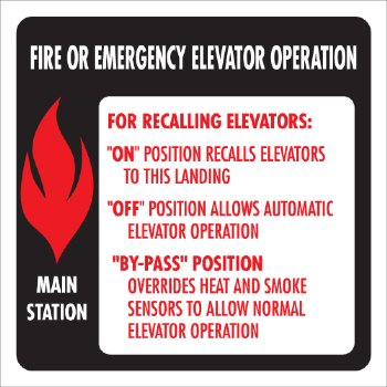 6" x 6" Elevator Fire & Emergency Signage Main Station. Plastic non-glare finish. Process subsurface inks resist sun and light fading. Full 3M back adhesive.