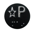 1.375" diameter (34.925 mm) 19 guage (0.040") thick Elevator Car Station Braille Plates. Meets all ADA standards. News Gothic typestyle. 3M VHB adhesive. Standard Studs are #6-32 x 3/8" Long.