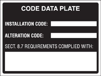 4" x 3" (101.6 x 76.2 mm). Black Printing on Anodized Aluminum. Printed Metal Elevator Name Plates & Data Tags.