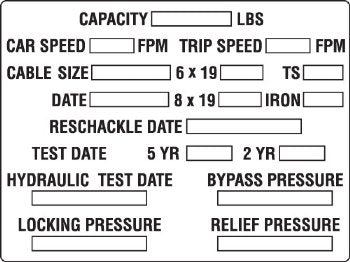 4" x 3" (101.6 x 76.2 mm). Black Printing on Anodized Aluminum. Printed Metal Elevator Name Plates & Data Tags.