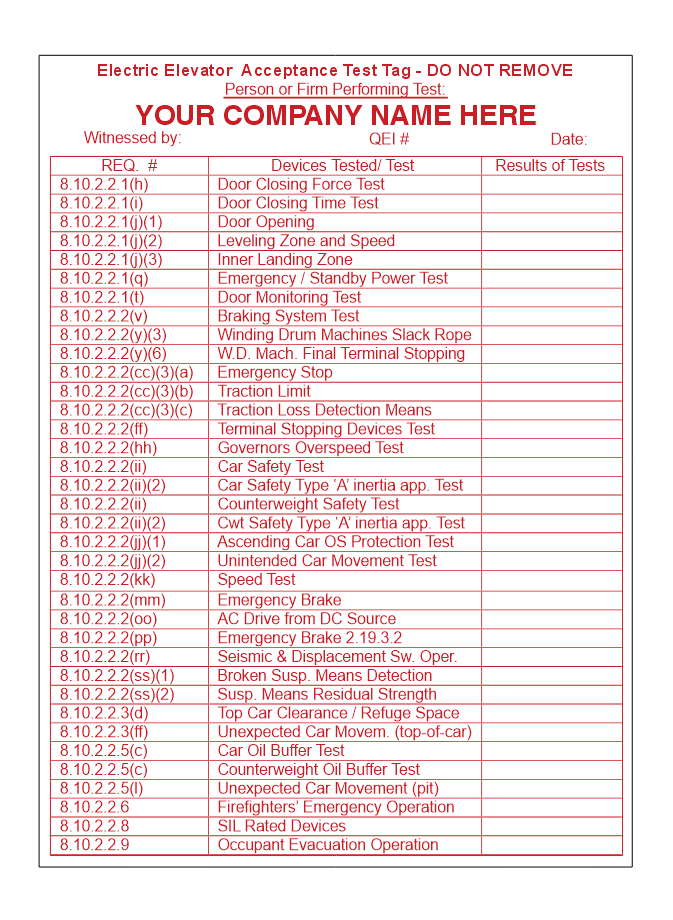 4.75" x 6.5" (120.6 mm x 165.1 mm). Red Printing on Anodized Aluminum. Printed Metal Elevator Name Plates & Data Tags. ANSI A17.1-2022 Code Compliant
